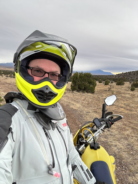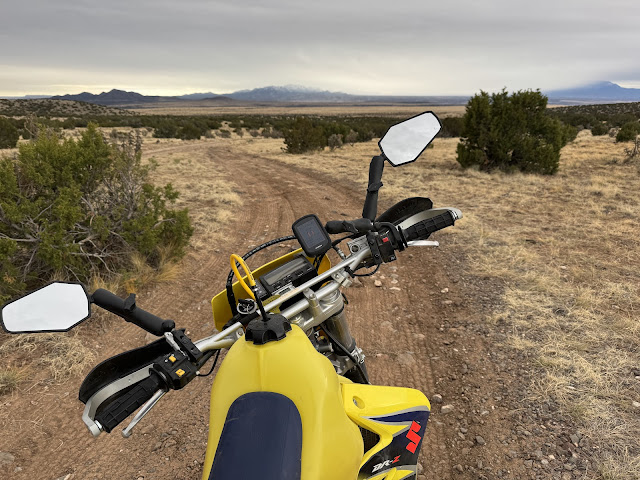 I (Chad) took a ride out on the Caja del Rio on the DRZ, hoping to beat raindrops (maybe snowflakes) that seemed imminent -- good views although a bit chilly!
