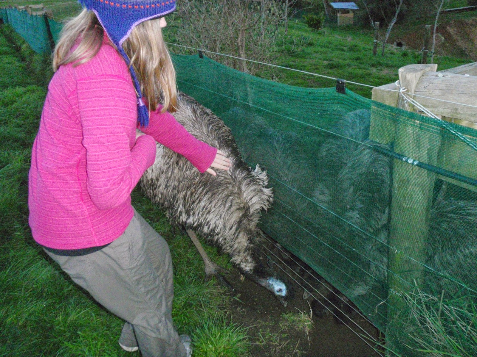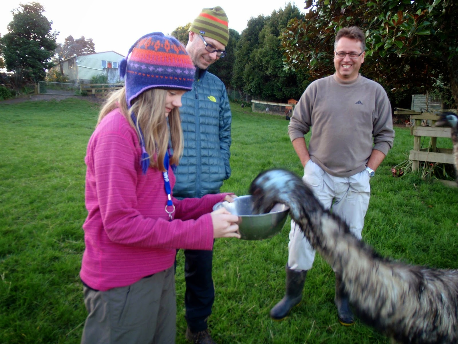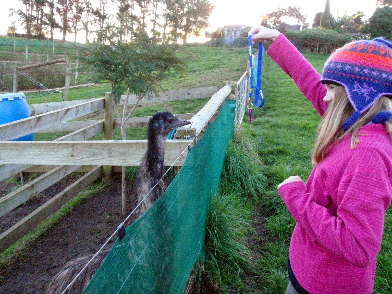 Nimue got to feed the emus; at one point there were five of them all pecking at the food bowl at the same time. Up close, they look quite dinosaur-like.