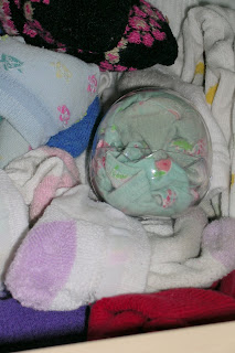 Ma December 05, 2008 #kiddo #underpants eggNimue's dresser was the pit of chaos that we attacked this week -- between having too many clothes, outgrown clothes, and a systematic pattern on her part of just stuffing things in haphazardly, the drawers were getting hard to close, and it was hard to find things. Upon starting the underwear drawer, we found this object: