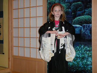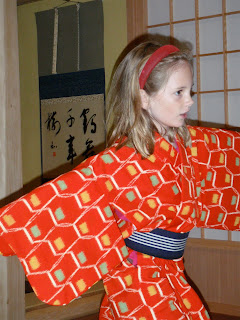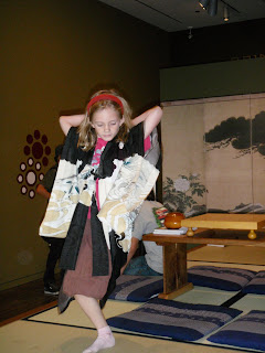 After three hours had passed, we finished pretty much the whole museum and she was tired, until simultaneously discovering her second wind and a little room full of hands-on stuff for kids downstairs. She took over the kimono dress-up play area and danced and danced and danced until Mean Ma finally dragged her away.