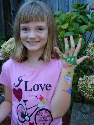 Ma August 26, 2011 #kiddo #school #anna #bikeFourth grade officially started today. I'm not sure exactly why Nim came home and painted "Mr. Squiggles", among other things, on her arm, but she seems cheery enough. Note the excellent tentacles on her fingers; she can animate Mr. Squiggles :)