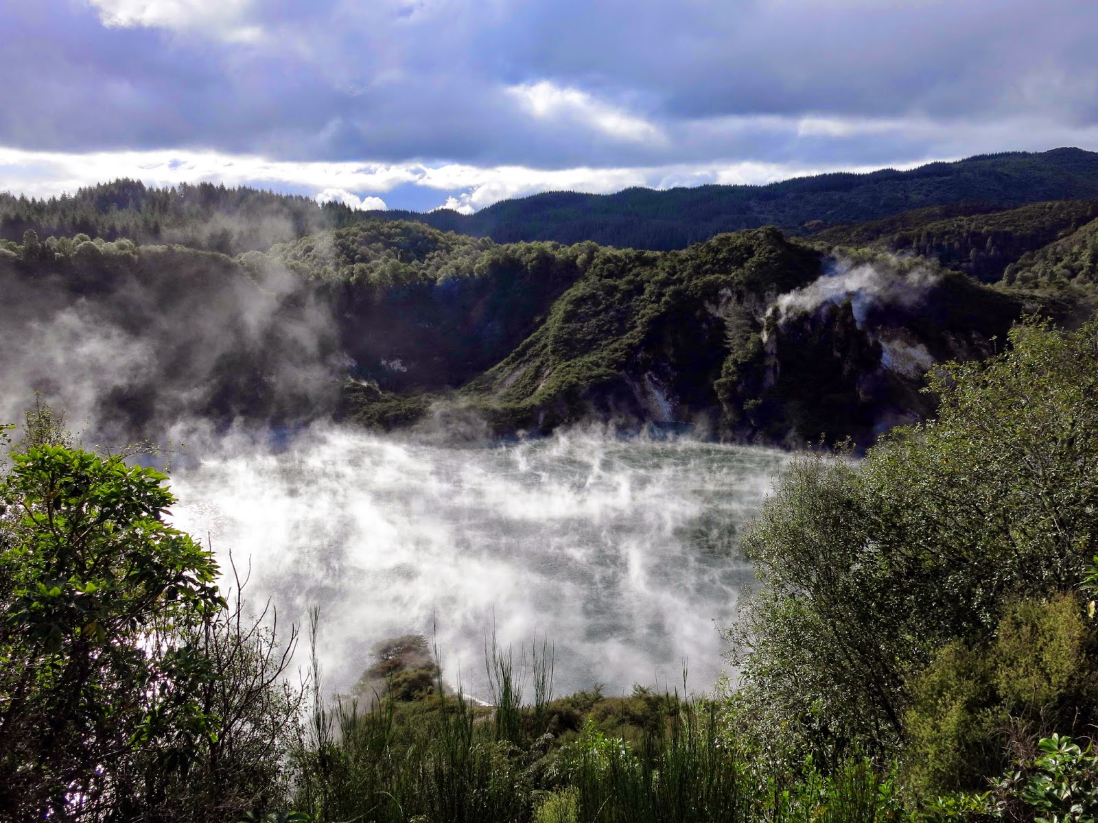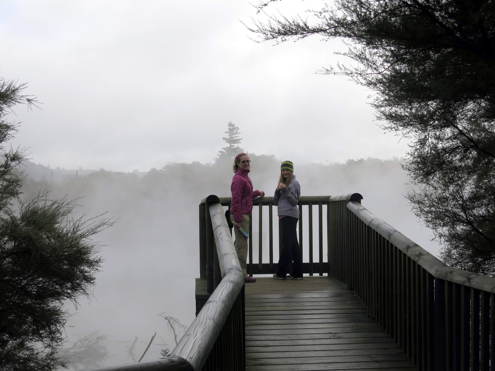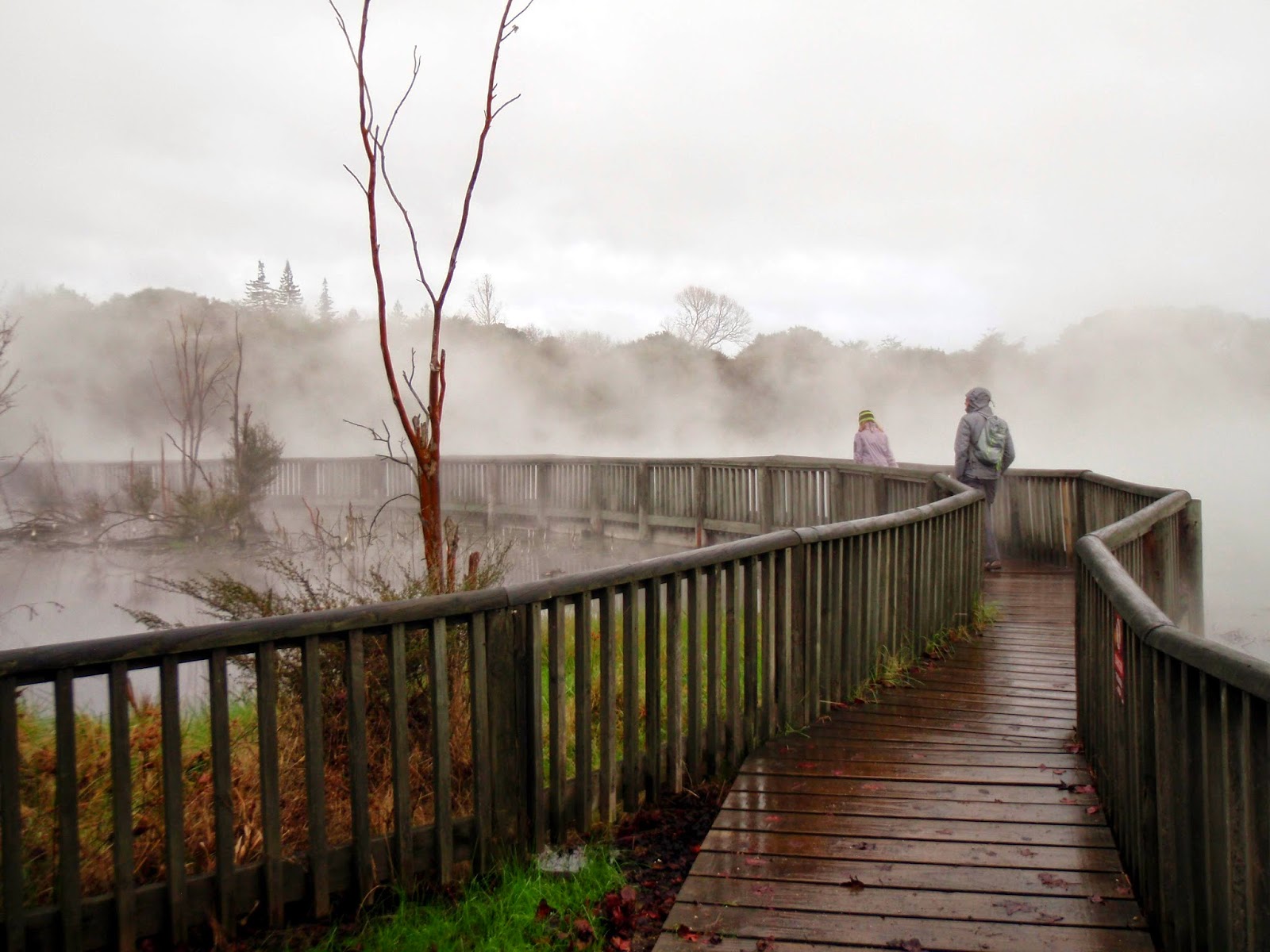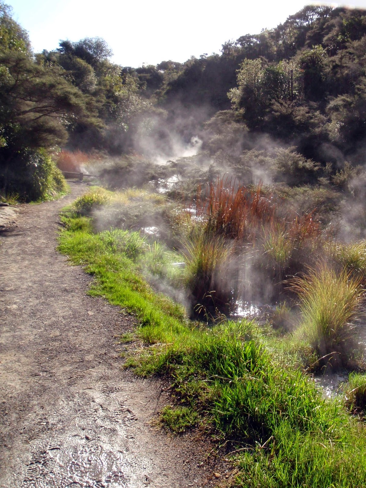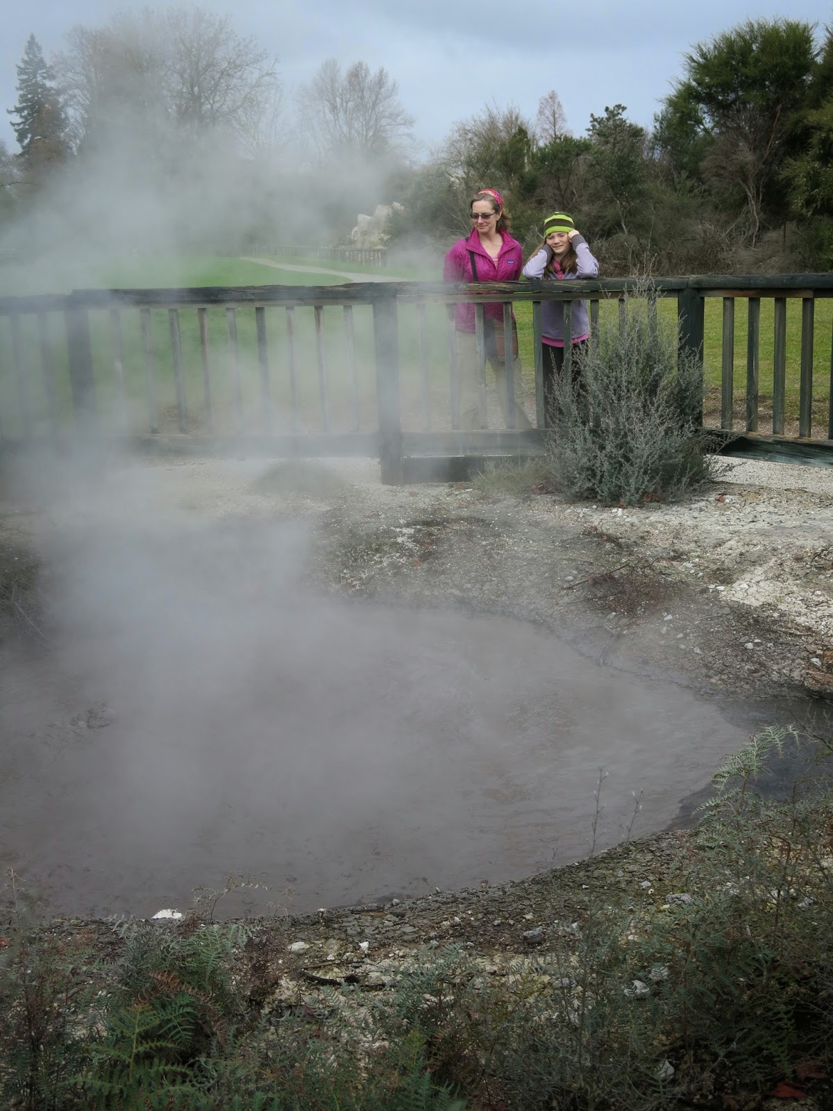 Ma July 31, 2014 #family #vacationOne of the areas we stayed at in NZ was near Rotorua, a town built on an active geothermal area. Quite an active geothermal area. The town itself smells of sulfur and there is steam coming up out of the ground seemingly everywhere. It's well-known as a tourist destination, with thermal spa facilities (some of which date back to the turn of the last century), Maori village experiences at which you can cook your food right in the hot springs (sort of like an uncontrolled sous-vide setup), and a range of adventure sport activities ranging from straightforward things like mountain biking to less common things like rolling down hills in a giant plastic ball (Zorb -- look it up). It's probably very scary to be there in the height of the tourist season, as the population swells to some large multiple of normal, but it was pretty pleasant in the winter.