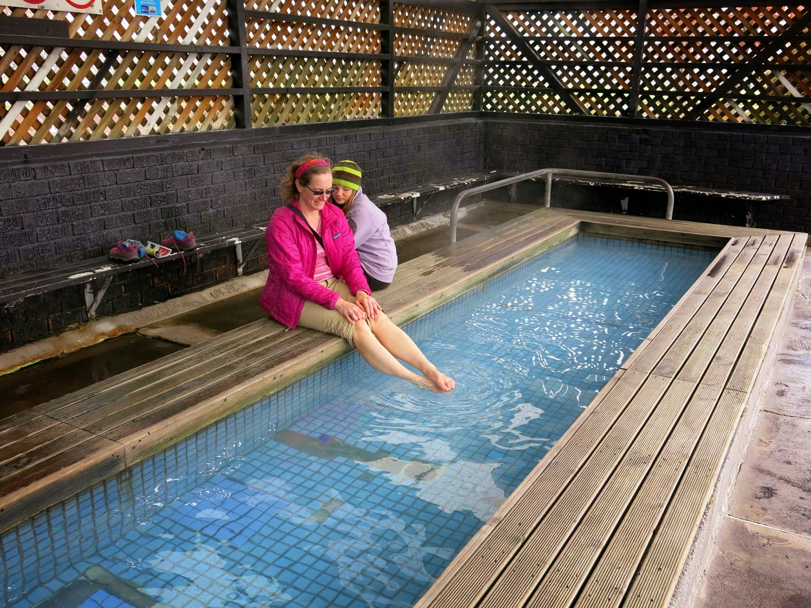 Explore the non-mud, non-scalding, geothermal aspects of the park -- there were several pools of relatively clear water that had little pavilions built around them. I gently eased my feet in (it was hotter than any hot tub I've ever been in) and soaked for a few minutes while we waited out the day's rain squall. Afterwards, my feet were all tingly and happy :)