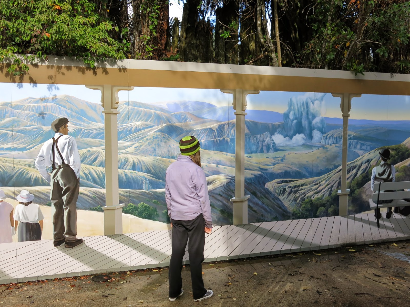 At some point, we explored the local museum, built in the bath house of one of the original spa facilities over on the shore Lake Rotorua. It was quite interesting to explore the plumbing system underneath, learn about all of the "treatments" offered back in the day (electro-mud bath, anyone?), and then go upstairs to see more Maori carvings and learn about the history of the 1886 Mt. Tarawera eruption.