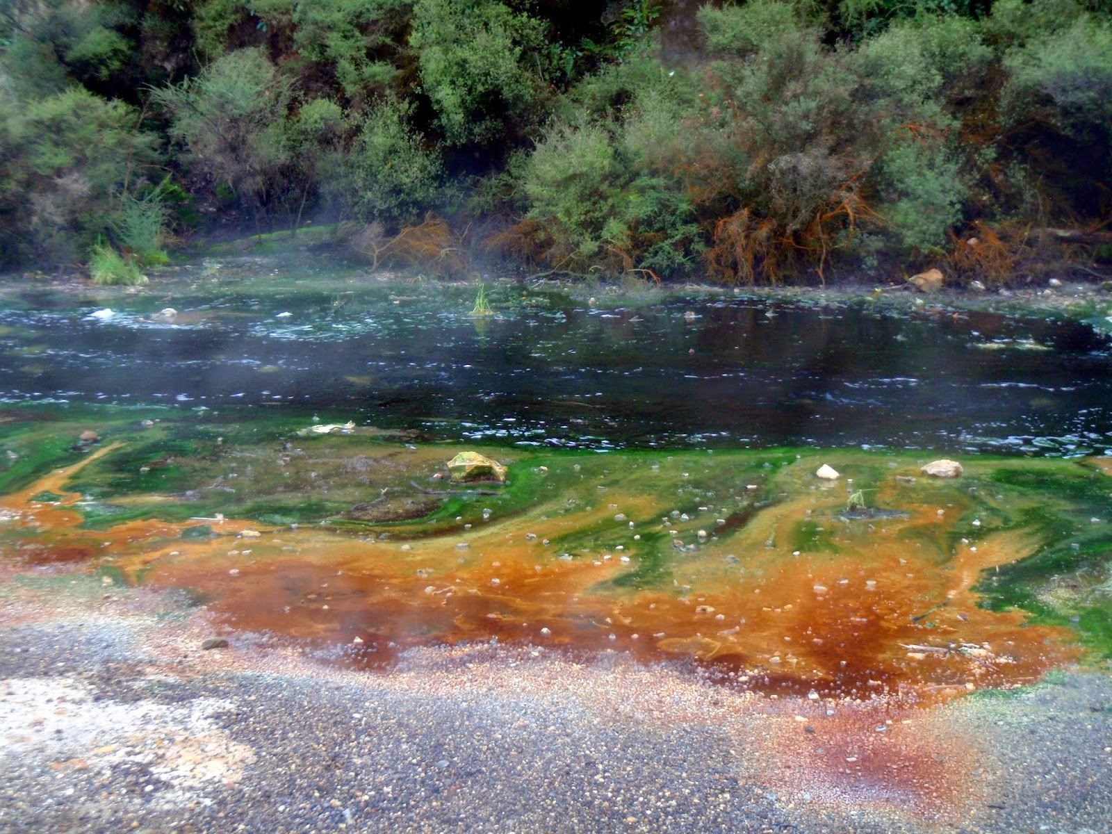 Frying Pan lake, the world's largest hot spring. The average water temperature in the lake pushes 140F and there is quite a bit of CO2 and other gases burbling up.
