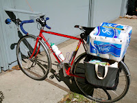 Ma April 05, 2011 #bike #choresThe only problem with going to Safeway is that I don't go frequently enough to have the checkers trained not to look at me weird when I insist that everything go into my two bags, regardless of weight, so I can take everything home on the bike (toilet paper -- which gets strapped on top -- excepted).