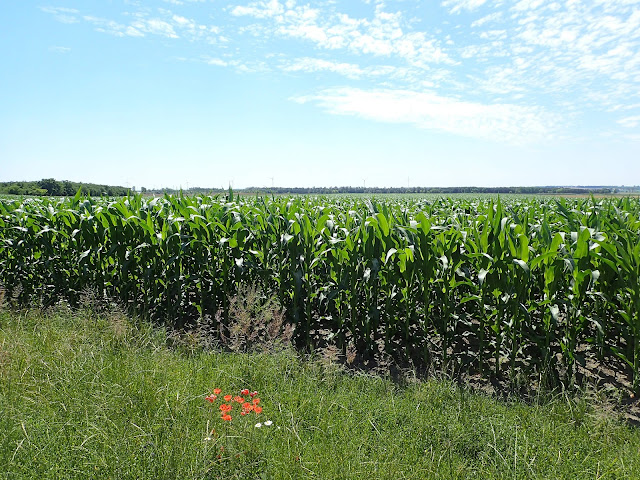 We could have taken a detour to see the stud farm at Bablona, but it was hot out and none of us are that interested in horses. Good choice, too, as the route we did take turned into a delightful dirt road line with wildflowers,