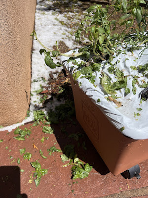 Hail Ma June 03, 2023 We got some 3/4 inch hail yesterday. It made chopped salad of my herb and tomato plants. ‹ New animal friend! Pond flowers ›