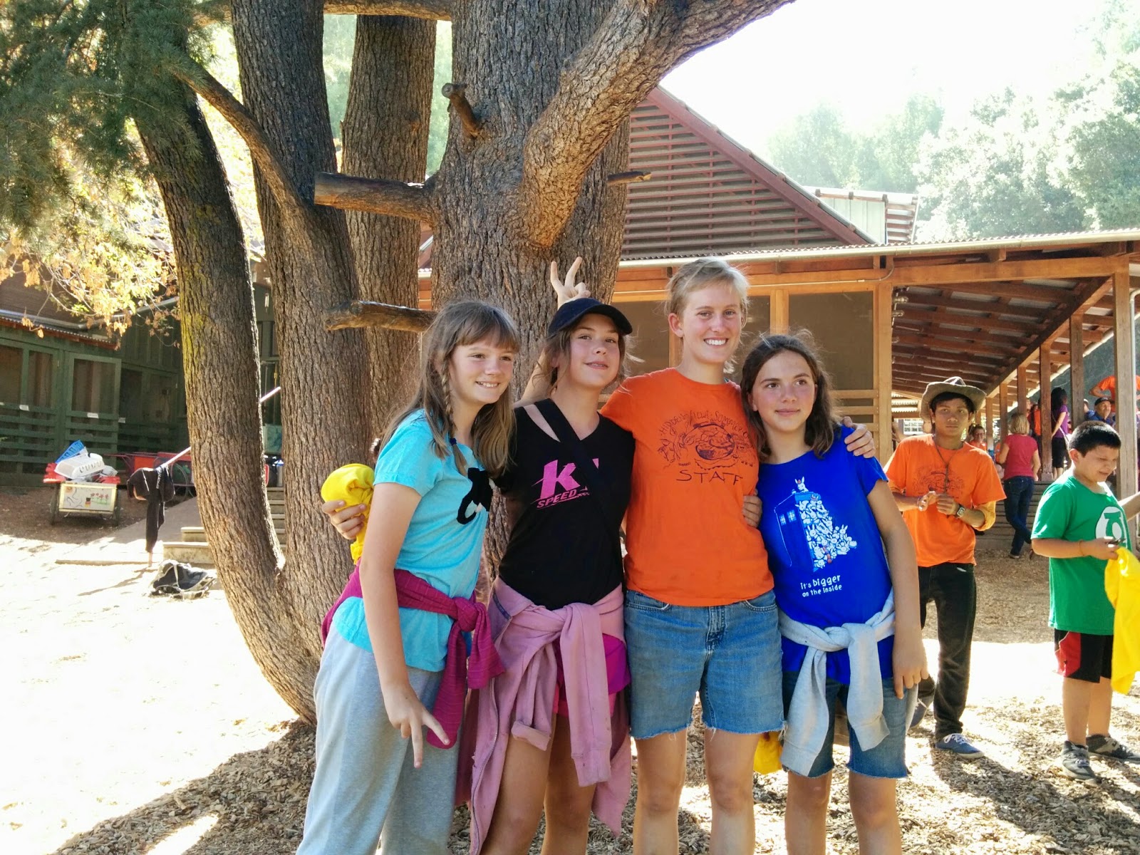 Ma August 01, 2014 #kiddoI picked up my Happy Dirty Small Monster after 12 days of camp this morning, and was amused to note that the counselors (in the orange shirts) really don't look that much bigger than her anymore.