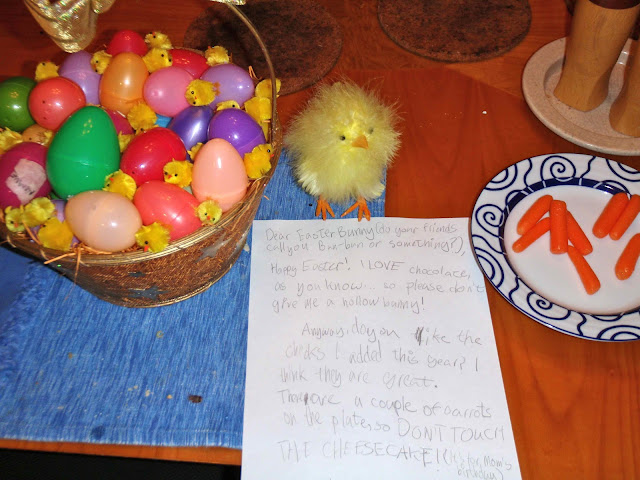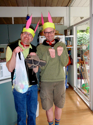 We had Todd and Sarah and kids over for Easter dinner; as usual, Todd and Chad performed demented Easter Bunny duty.