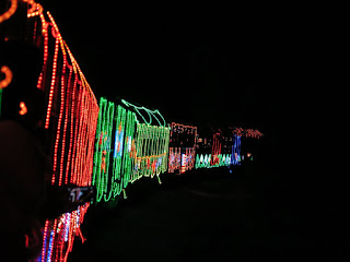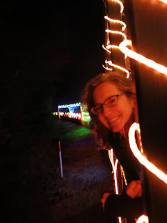 We also took a ride on the Niles Canyon railway - a chilly ride from Sunol down to Fremont and back, on a charmingly decorated vintage train festooned with lights inside and out. We had a great outing, despite the preponderance of loud small kids whose enthusiasm sometimes drove us out into the "open" railcars -- which really made for better photos anyway, and weren't that much colder than the enclosed cars in any case.