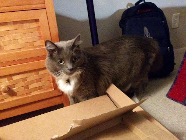 And worried. Eventually she found the pile of packing paper and adopted it as a nest from which to keep an eye on us.