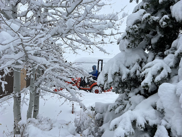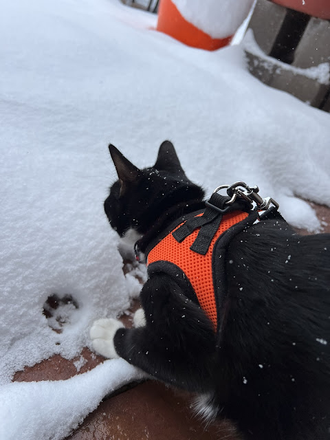 Ma November 08, 2024We got an unusually large dump of snow to start out the season -- about a foot at the house. Of course this happened the morning we were going to leave for a weekend away for our anniversary. We admired the snow, which I introduced the cats to while Chad plowed our and a neighbor's driveway.