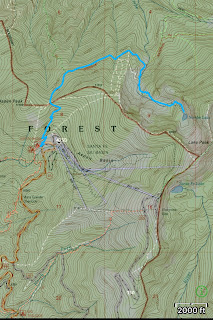 The trailhead is at about 10,000 ft, and the lake is at about 11,500, and there’s a bit of up-and-down in the middle; 8.5 miles round trip, so we got a good workout in for the day!