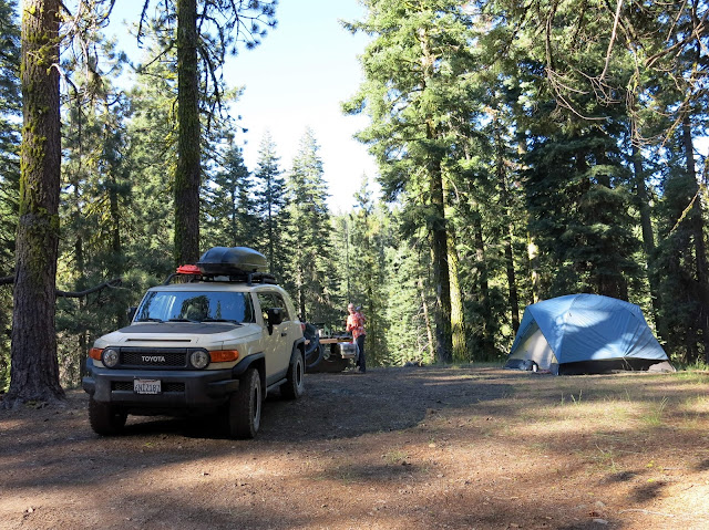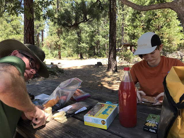We were lucky and got one of the last first-come-first-served campsites at Warner Valley on the south side of Lassen. This campground is supposedly normally pretty empty, but it was oddly busy -- likely because the main road through to the main big campground on the other side was not yet open. One entertaining feature of this campground was that it was right on the PCT, so we got to watch many long-distance backpackers traipse through.