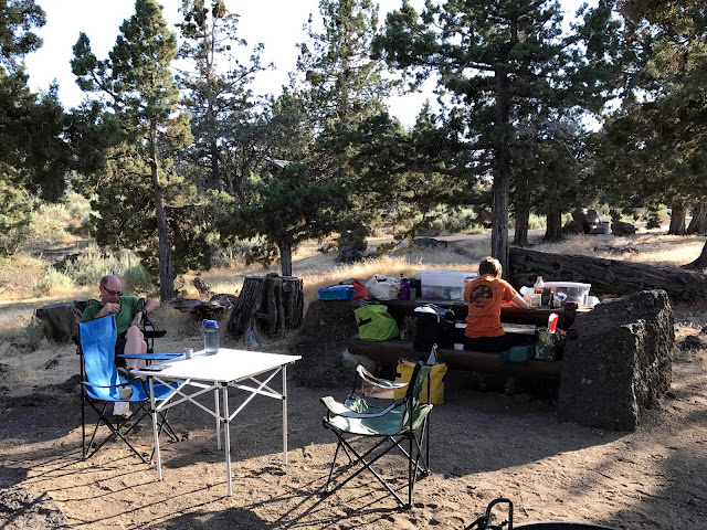 After several days of camping, we ended up in a little rental cabin in La Pine so that we would have a chance to take showers and do some laundry. This was somewhat odd due to the sulfurous well water in these parts, but the cabin was nice otherwise and was adjacent to a state park with mountain biking :)