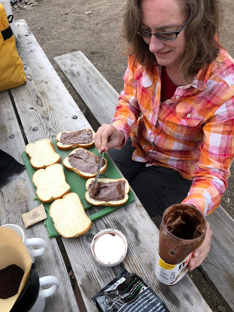 By the last morning of camping, our food supplies were a little thin: thus, grilled Nutella sandwiches for breakfast. Oddly good.