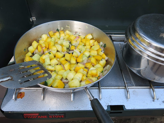 Vegetables that didn't get eaten before we left were often featured at dinner. I had no real food plan other than to eat the random stuff that was thrown into the food bags after Chad's party.
