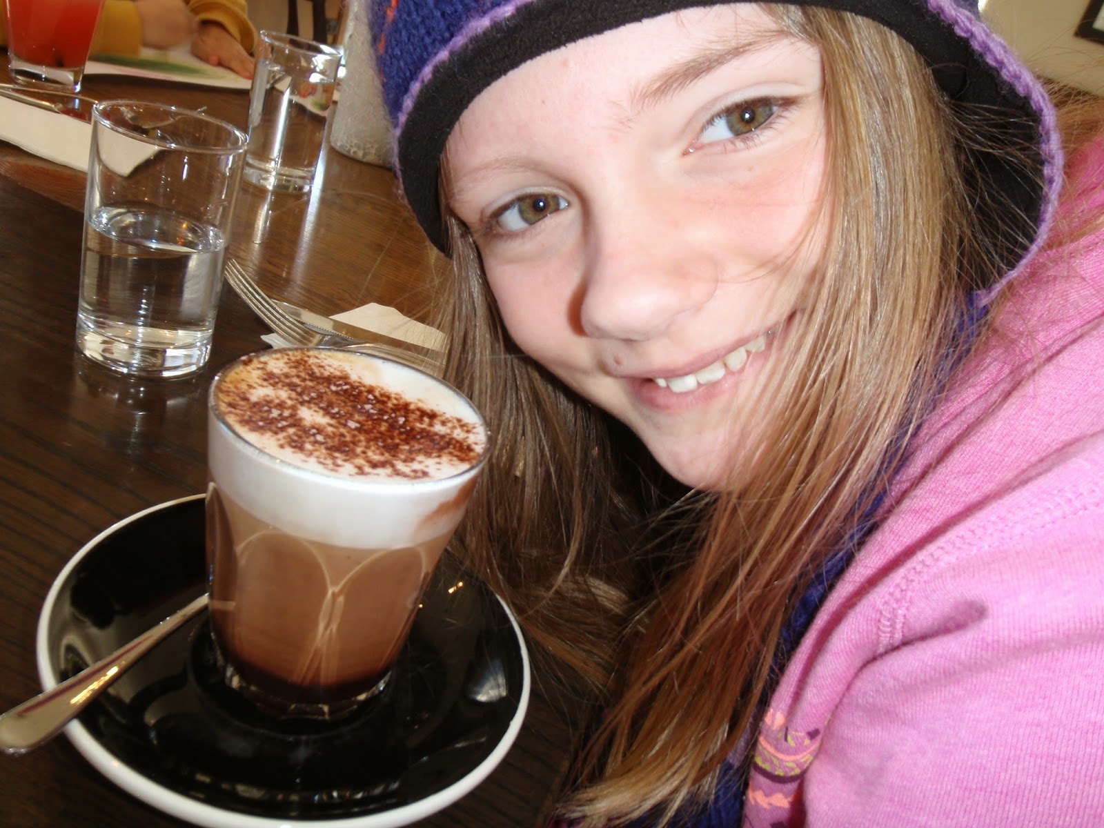 Ma July 03, 2014 #kiddo #vacationAs I was making edits on some of the vacation photos in Picasa this evening, I was struck by this picture. Sometime during every trip, Nimue gets an unexpected espresso drink. This year, it was at a restaurant on the harbor next to the Sydney Opera house. Picture this: long table with 10 people seated for lunch, kids not necessarily seated near parents. Older cousin orders a mocha without negative parental intervention. Ma thinks "Crumbs! Now I can't say 'No' to my own kid when she orders the same," so Nim got one too. Later on when the drinks arrived, cousin was asked by parent "Who said you could have a coffee?...." 'Doh! Score one for the kids.