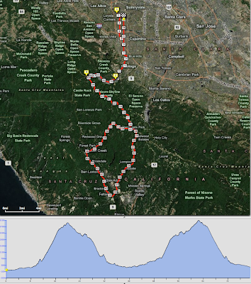 Deslightful excess on Monday: about 80 miles and 7400 feet of climbing; almost 70 degrees out!