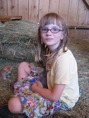 As part of our very full weekend trip to Downieville, Nimue got to go over to a farm with Linda to pick up our yearly lamb meat. When they got there, Nim was quite predictably enthralled with the six-week-old kittens.