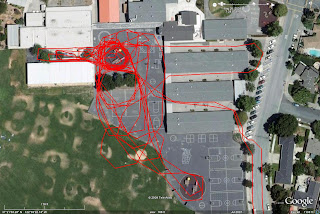 For the last day before school started, Nimue wanted to ride to school to make sure that we could make it there by 8:00 (well, maybe this was my idea, but I had her complete buy-in). Upon arriving, she proceeded to ride around the blacktop like a mad thing, as it will be the last day for a while that this is allowed. She racked up two and a half miles just by frenetically circling around the play structures, tetherball poles, and teachers preparing for tomorrow morning's onslaught of crazo kids. Plus, she got to ride over Texas. (see picture)