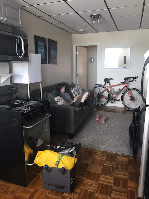 While we were in Boston, we stayed at an Airbnb apartment in a weird little 150-year-old building that is the sole remnant of its original neighborhood amidst much redevelopment over the decades. I picked it because it was within walking distance of sights and restaurants, was on the first floor so we could get our bikes in easily, and was only half the price of all the expensive Boston hotels.