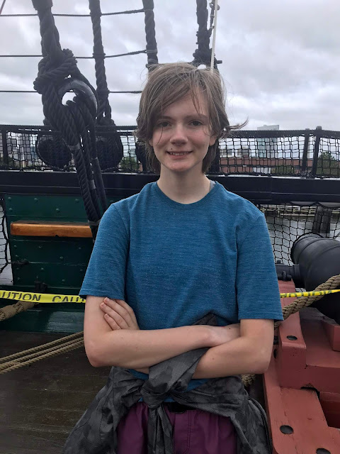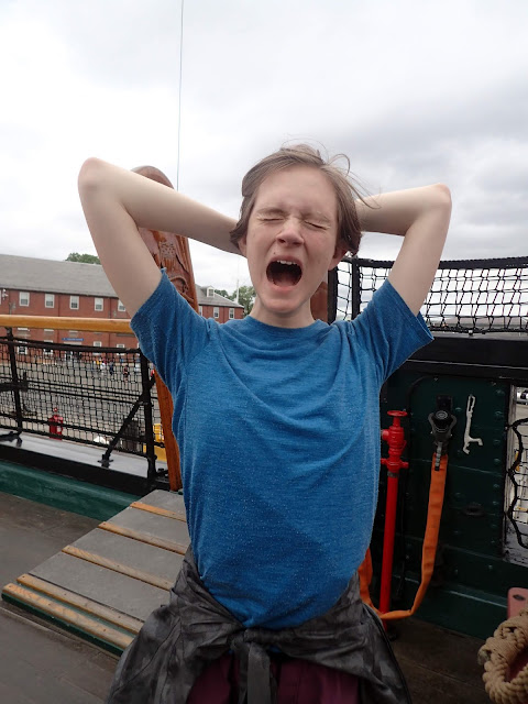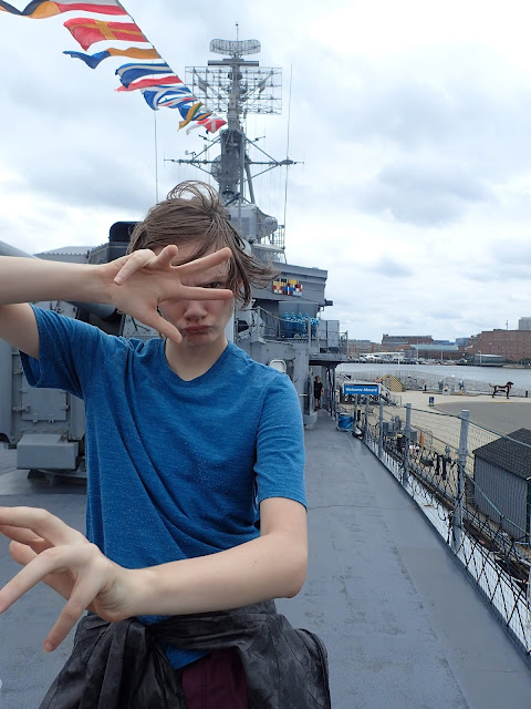 We did, of course also go visit the USS Cassin Young on the other side of the dock too. The contrast between it and the Constitution in both aesthetic and technology was notable. (And no, I have no idea what the kid was trying to express...)
