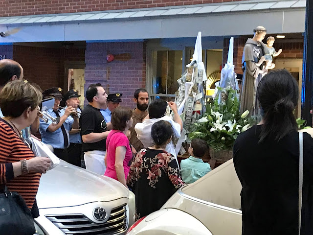 Outside, the procession for Saint Anthony of Padua went by. I was previously unaware that June 13 is the saint's day for this patron saint of lost things.