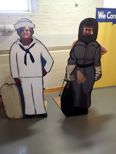 While the kid refused to be in the Rosie the Riveter cutout, apparently the goofy ponytail to keep overly-shaggy hair out of the way in the wind wasn't too embarrassing.