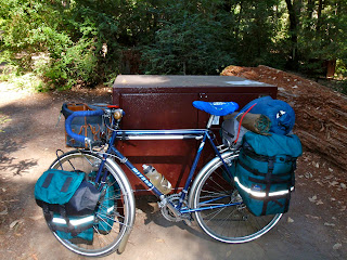 I'm happy to say that this actually works :) The first day we rode up and over Route 9 to Big Basin, where we had the bike area in the redwoods completely to ourselves. The second day we headed over to the beach, where we were one of more than a dozen tents squeezed into the bike area. The rangers here were pretty picky about check-in and out times here, and it rained caterpillars out of the oak trees, but other than that, it was a lovely campground up on a bluff above the ocean.