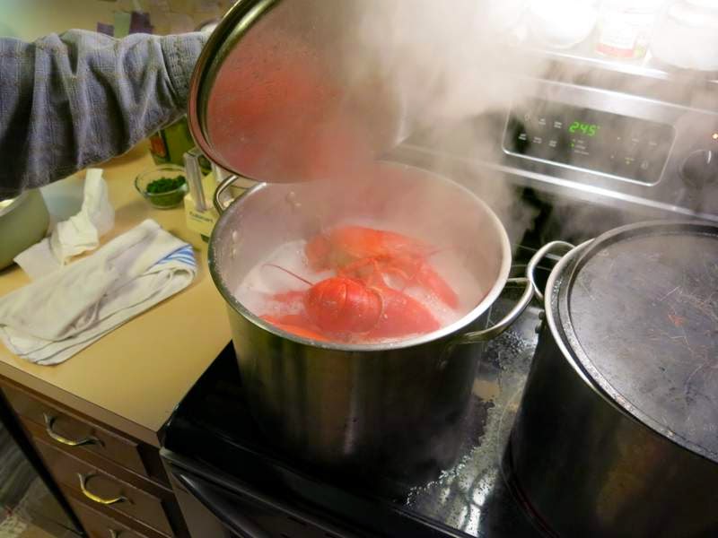 One must have lobster. Mmmm...lobster. It came right off the boat and home into the pot.