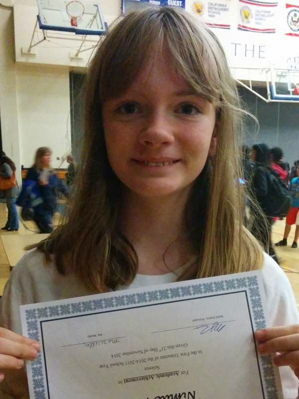 And the lovely kid with her teacher-nominated science award, which she refused to hold right-side-up. "Mom, I only got it because I was the only kid to get a 5 [the top grade] on all the tests so far."