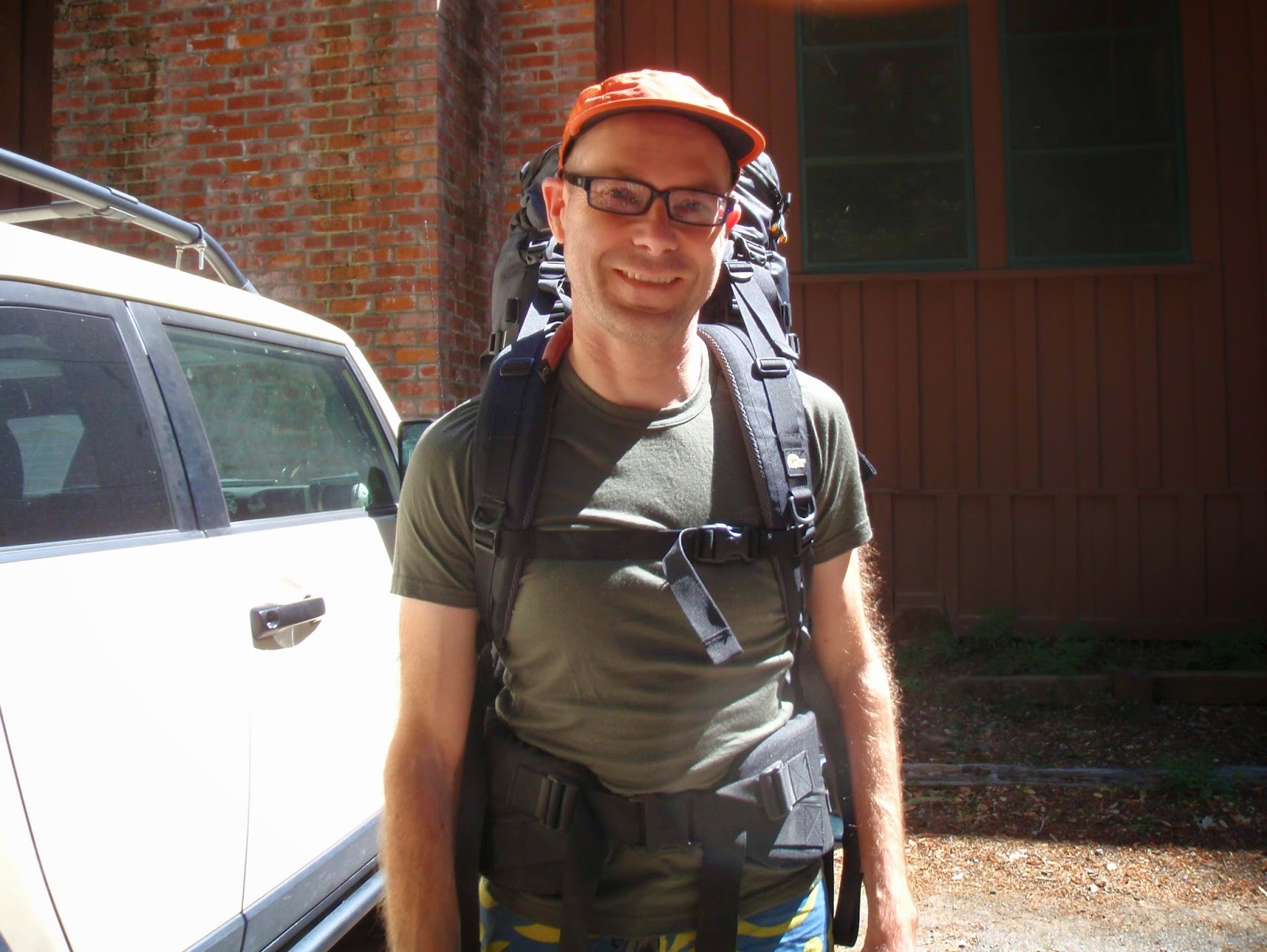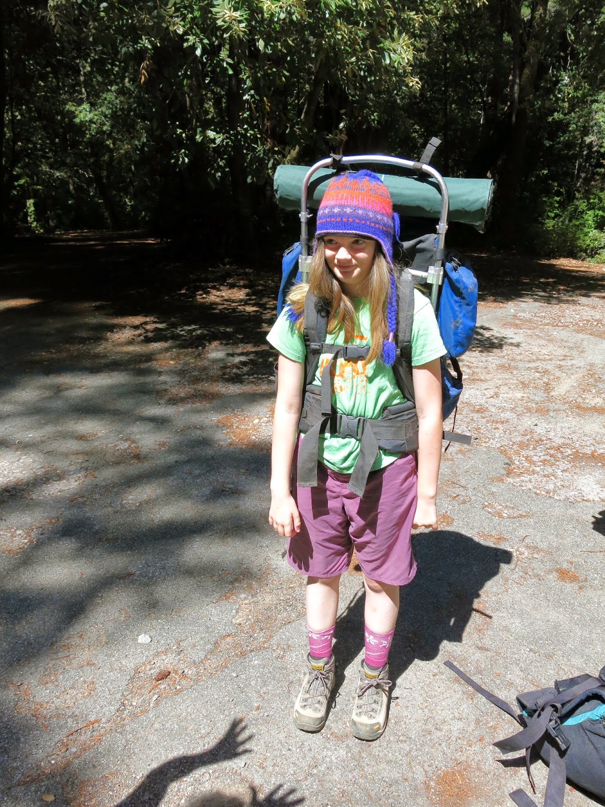 Before we started. The kiddo got my pack since it could be adjusted to fit her, and my good heavyweight hiking boots. They're narrower than I like anyway. (I had one of Chad's packs and a softer pair of boots.)