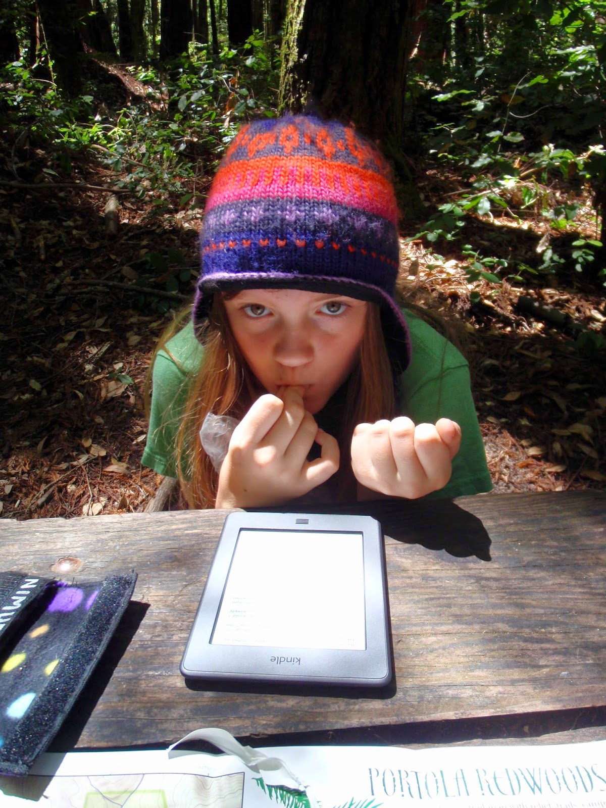 Ma May 30, 2014 #family #adventureWe decided to go backpacking over Memorial Day weekend, but not until the last minute, so local options were somewhat limited -- nothing available for Saturday night, but one potentially lovely spot at the Slate Creek Trail camp in Portola Redwoods for Sunday night. We're still working the kiddo up to this, so a one-night short trip wasn't necessarily a bad thing (plus it meant we could all go to the climbing gym on Saturday). I'll let the pictures do the talking: