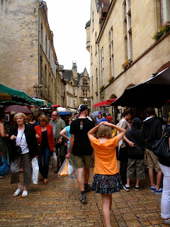5. Foot. We spent quite a lot of time on foot when in Paris, and also during the bike trip as we explored old villages, caves, and castles. (Pictured below are the road (?!) that led up to Chateau de Beynac and the Wednesday market in the medieval center of Sarlat.)