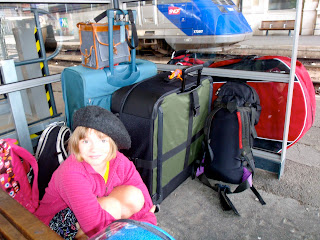 then a smaller regional train to Perigueux (you can see our luggage -- three big bags with bikes, and three backpacks with all our other stuff),