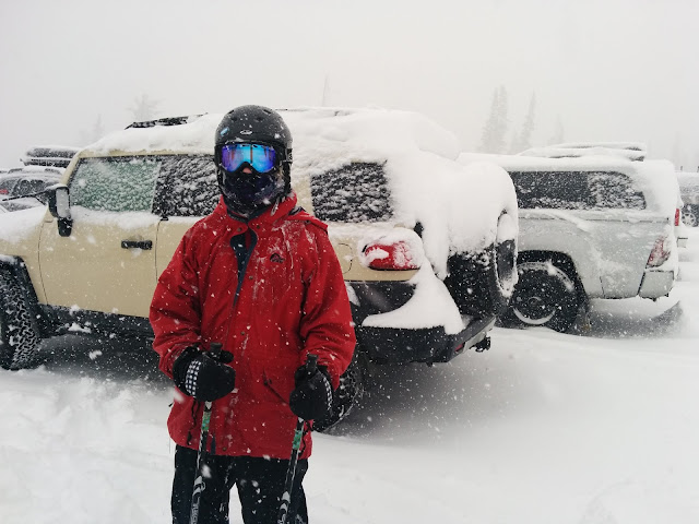 Nim and I went skiing weekend before last, since Chad wasn't yet back from DC. This is what the parking lot looked like at lunch. (Yay powder!)