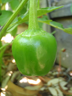 The first pepper. Appear not to be molested by squirrels despite the fact that I bravely planted them outside the cave. Ha. So far, at least.