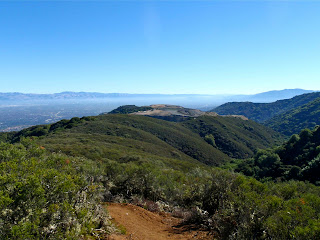 - Accidentally turned a 6 mile hike into an 11 mile hike due to the fact that a new trail presented itself. I was just planning on doing a reasonable loop at Rancho San Antonio, but there's always been a spot at the top of that loop that looked like there might be a use trail leading through the chaparral up the ridge in the general direction of Black Mountain. Previous investigation of maps made it look like a potentially nasty steep bushwhack through private property, so I've always been able to resist -- but this time there was clearly a lot of recent trail work and an official sign. I couldn't resist.