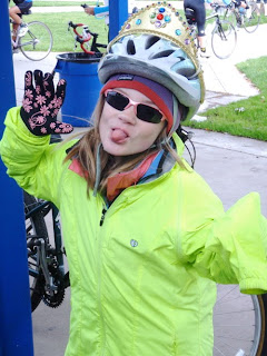 Ma April 12, 2010 #tandem #bikeOn Saturday, Nimue and I did the Cinderella Classic metric century over in the East Bay. We were strong, passing many people, and got to explore some nice little roads through the still-green hills that I'd never been on before. Nim was good, though her main comment about the adventure was something along the lines of "We rode too fast, Mommy, and it made me cold!" Over the course of the ride she stole all my extra warm layers and put them on on top of all her layers -- by the end, she was wearing an undershirt, a jersey, a wool sweater, her windbreaker, my fleece layer, and my windbreaker! I on the other hand, was working hard enough to be plenty warm in just my jersey. Despite the fact that I could clearly feel Nimue's effort on the bike, she still had enough energy to be goofy at lunch, and ran around the yard like a mad thing after we got home.