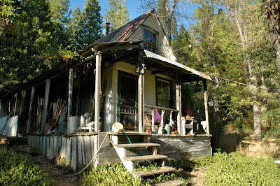 For those not in the know, the small hamlet of Forest, CA is a Gold Rush town up a dirt road from Downieville that hasn't quite achieved ghost town status. There are a few funky cabins dating back from the late 1800's, a picnic table, and an old bar/dance hall building. And mountain bike trails. Some of the most beautifully-designed trails for bikes that I've ever had the pleasure of riding, thanks to the efforts of the Forest Trail Alliance. Chad, being a former local, knows the guys who built these trails and had ridden them previously. Their project has really gained a lot of momentum; every time we head up in that direction, there are new sections to play on.