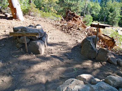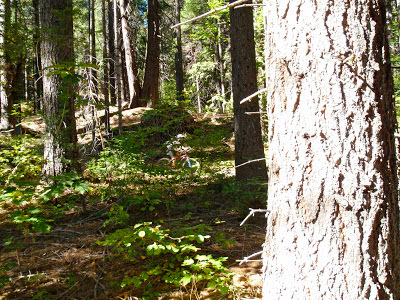 We also enjoyed the usual trails up on the ridge and on Sandusky. I just can't wait until they get around to building the connector trail back down to the river and Downieville. One could then do an epic ride from Downieville down the North Yuba Trail to Goodyears Bar, up Mountain House Road (dirt), around all the fun trails in Forest, and then down the new connector trail back to Downieville in time for dinner. It'll be glorious! Unlike the "traditional" Downieville trails, the esthetic here is more that of good flowing lines through the woods than crazy technical downhill racing -- though there are many side features and jumps for temporary moments of insanity.