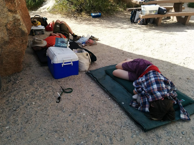 After a well-deserved reward of icy-cold popsicles, my peoples passed out at the campground. Riding sand in the heat is hard work!