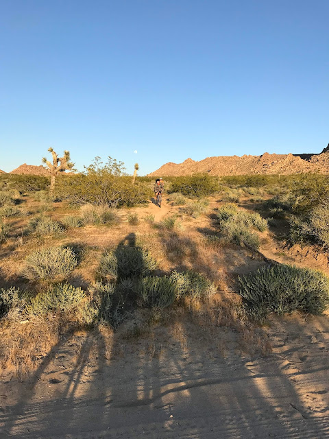 We rode there pretty late in the afternoon, leading to nice late afternoon light, a rising full moon (above) and long bike shadows (below).