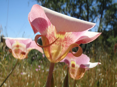 Knowing the terrain in this area a bit (I've done some other trails lower down in the park, and have ridden up the paved road up Mt. Umunhum up to the point where you start to see very forbidding "No Trespassing" signs), I fully expected some of the trails to resemble steep gravelly walls, and I wasn't surprised. I learned that while I can ride up a 24% grade gravel misery, I couldn't get started from a full stop on it. It gives one a whole new appreciation for the dirt climb the riders at the Giro d'Italia were subjected to on their time trial this year... The stop, however, was for a good cause -- there were still many wildflowers up at that elevation, like this nice mariposa lily: