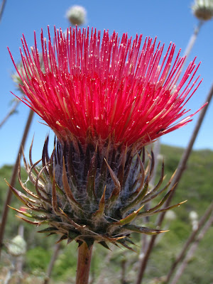 A somewhat unusual red thistle. This one is actually native, unlike the evil purple ones that seem to be taking over at lower elevations.