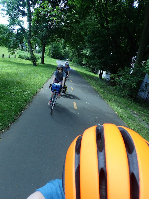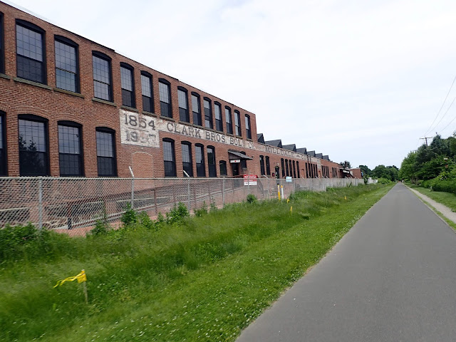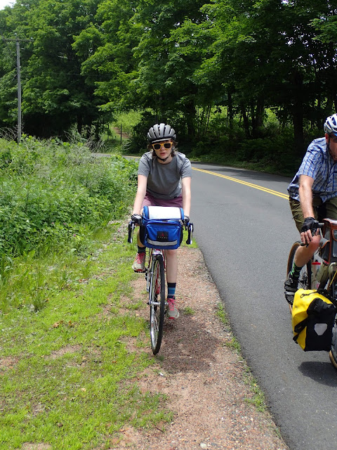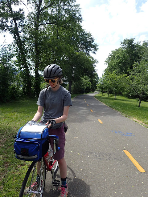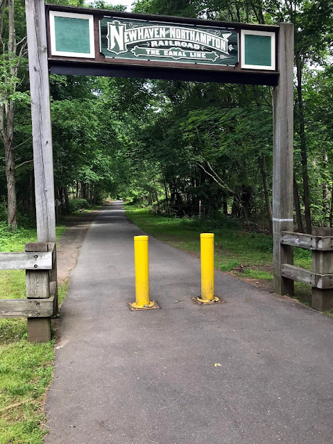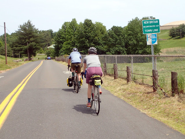 To get up to the park from New Haven, we followed the Farmington Canal Heritage trail north out of town. This route follows a former canal line that because part of the New Haven Northampton rail line, and is now a gentle paved rail-trail that cuts north across the state as part of the East Coast Greenway. We followed it for miles and miles and miles -- a welcome change from the more traffic-infested road sections we had previously been on.