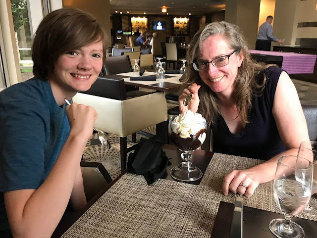 Eventually we made it to our hotel for the night. Kid is still smiling.