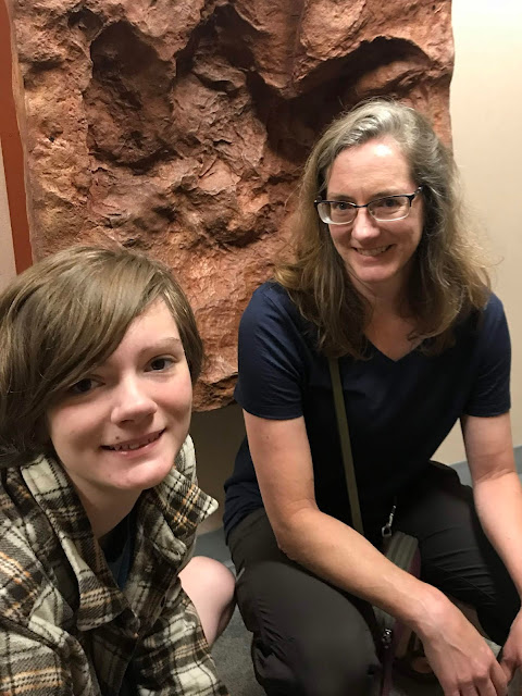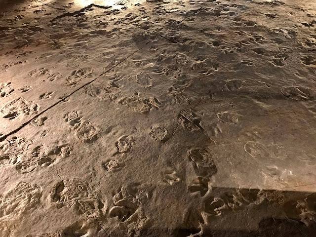Next morning brought dino tracks! Lots of dino tracks. The building is built right over the site, though apparently there are a lot more outside the building that have been reburied to protect them.